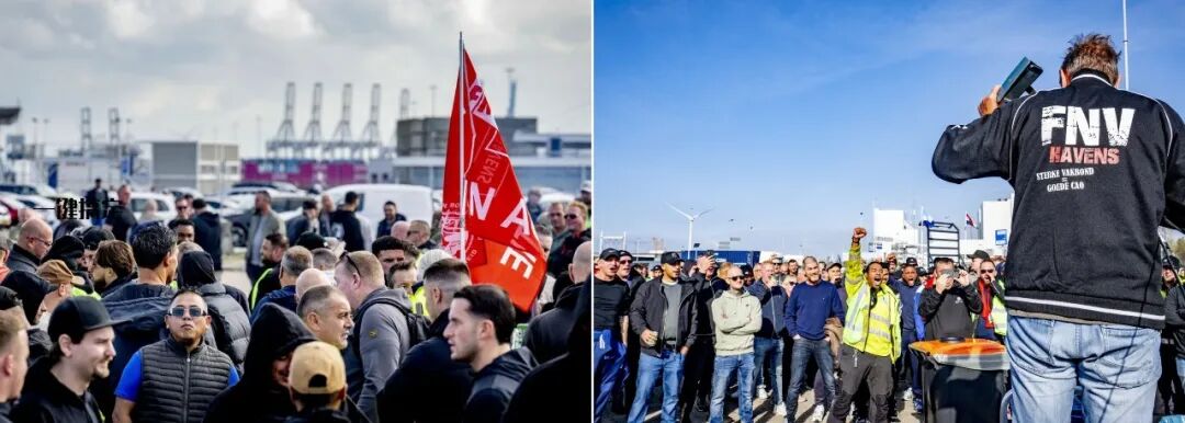 鹿特丹港罷工危機升級,約700名負(fù)責(zé)船舶及碼頭集裝箱綁扎作業(yè)的貨運工人發(fā)起罷工,原定48小時停工被無限期延長,導(dǎo)致港口集裝箱裝卸業(yè)務(wù)全面停滯。